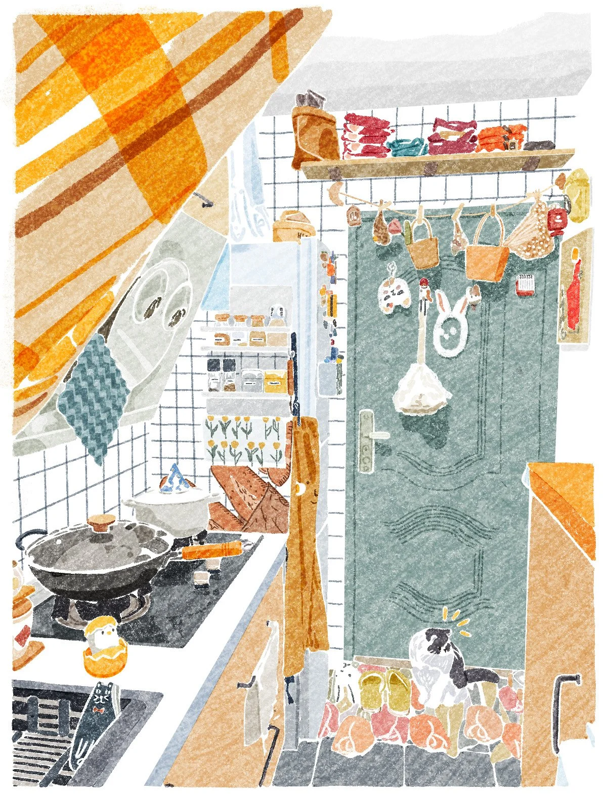 Illustrations using whimsical strokes and a use of white space to tell a warm and comforting story. The overall style of my illustrations are reminiscent of crayon or pastel drawings, with visible strokes that add texture and depth.